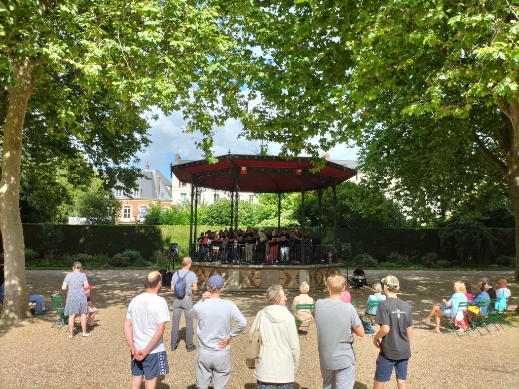 At the heart of their tour was time to enjoy the lovely facilities at the Orangerie Bourg Saint Leonard, with rehearsals every morning culminating in a relaxed performance evening outside the chateau, with the sun setting whilst the group performed, a wonderfuly memorable evening!
