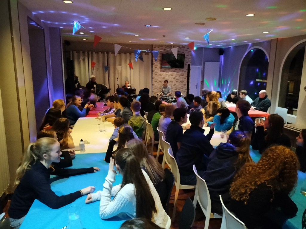 The final event of the tour took place that evening, and the accommodation centre was transformed into a jazz club! The evening began with a special dinner of local produce accompanied musically by the Henry Lemarchand Jazz Trio: