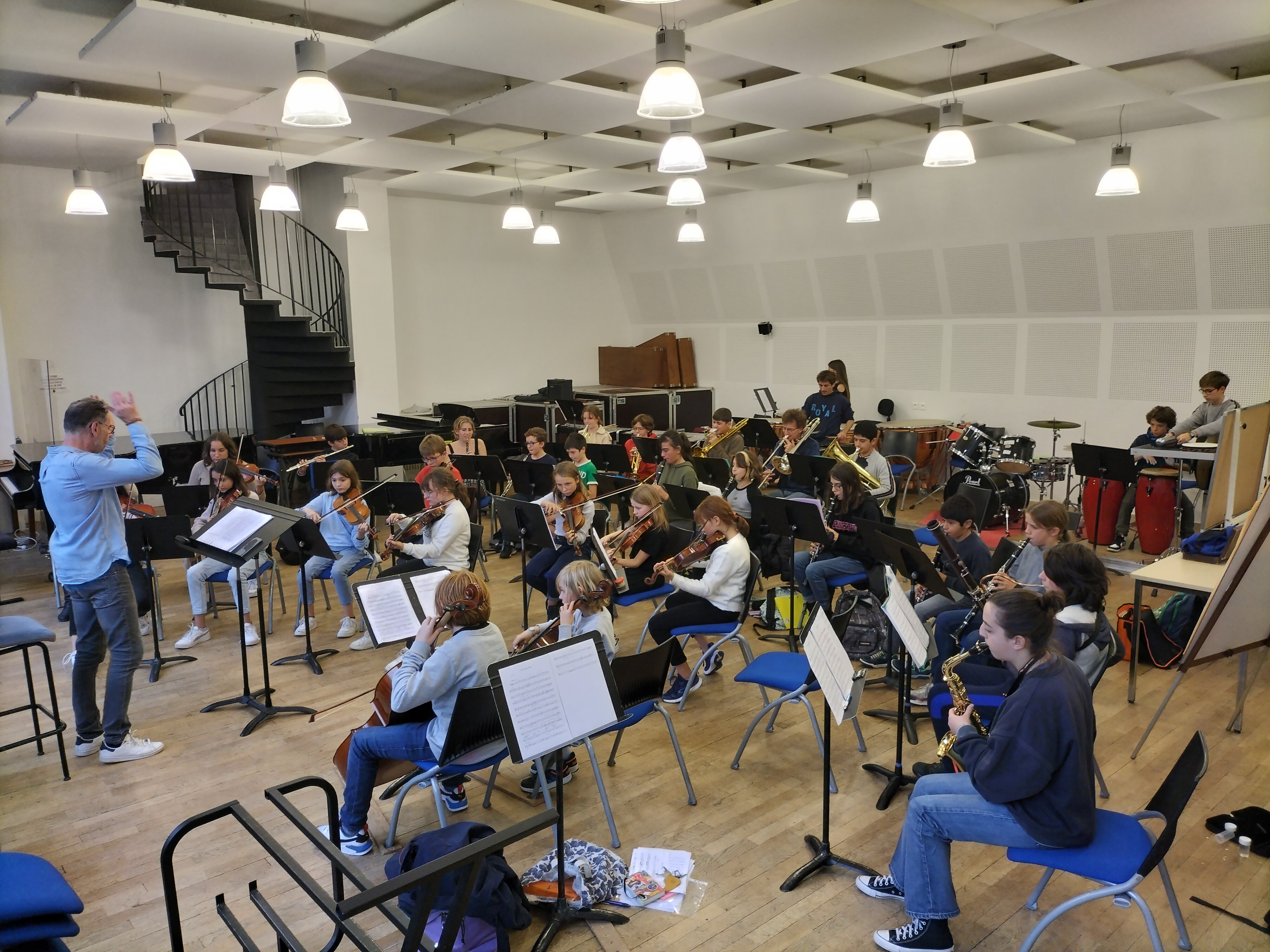 After the service, the group spent the rest of the day in Honfleur, with free time to explore this pretty port town and rehearsals at the Greniers a Sel. Joined by scores of young musicians from the Ecole de Musique ‘Erik Satie’ d’Honfleur, the project centered around the creation of a giant multi-level orchestra with 110 musicians playing together.
