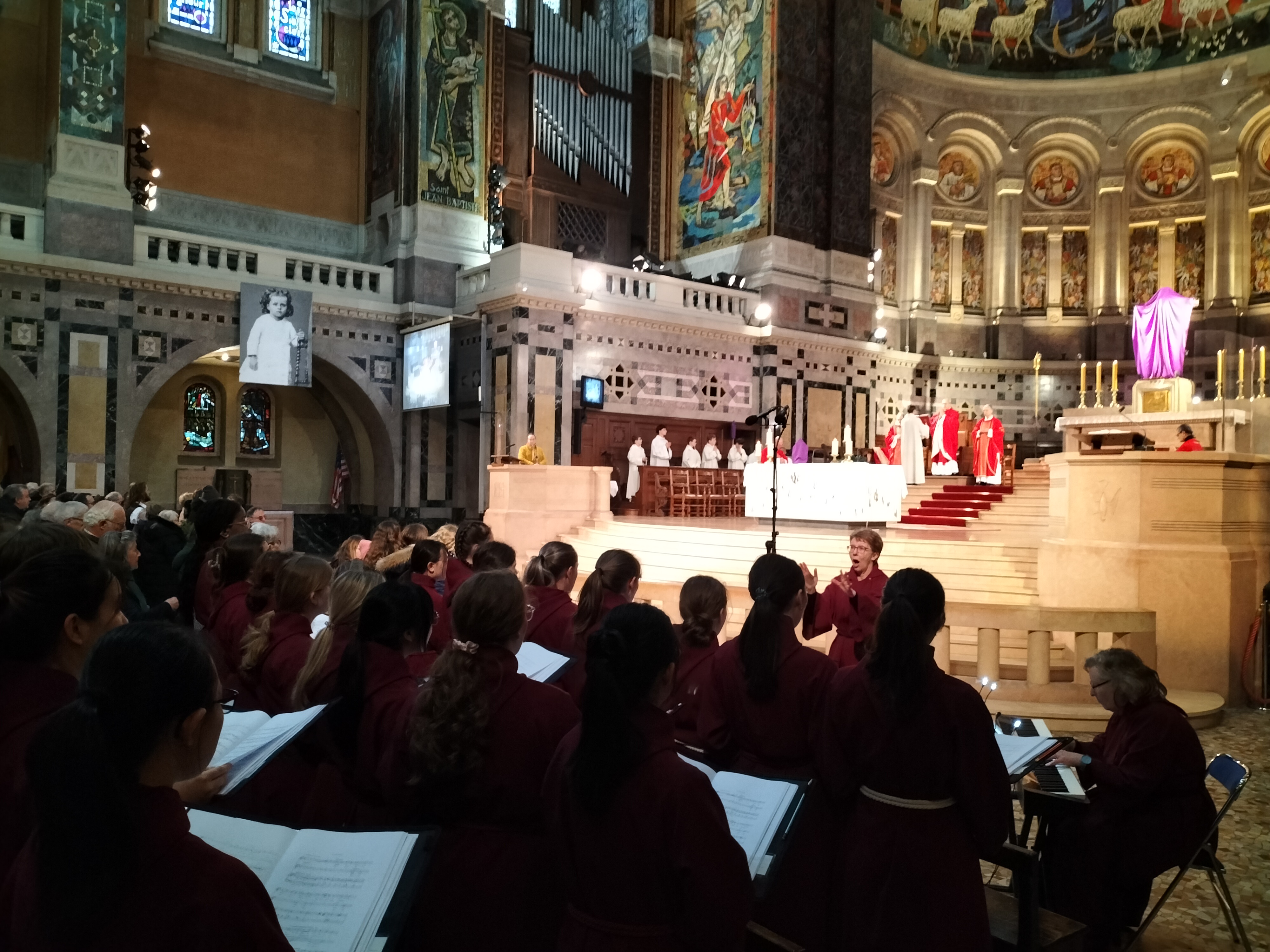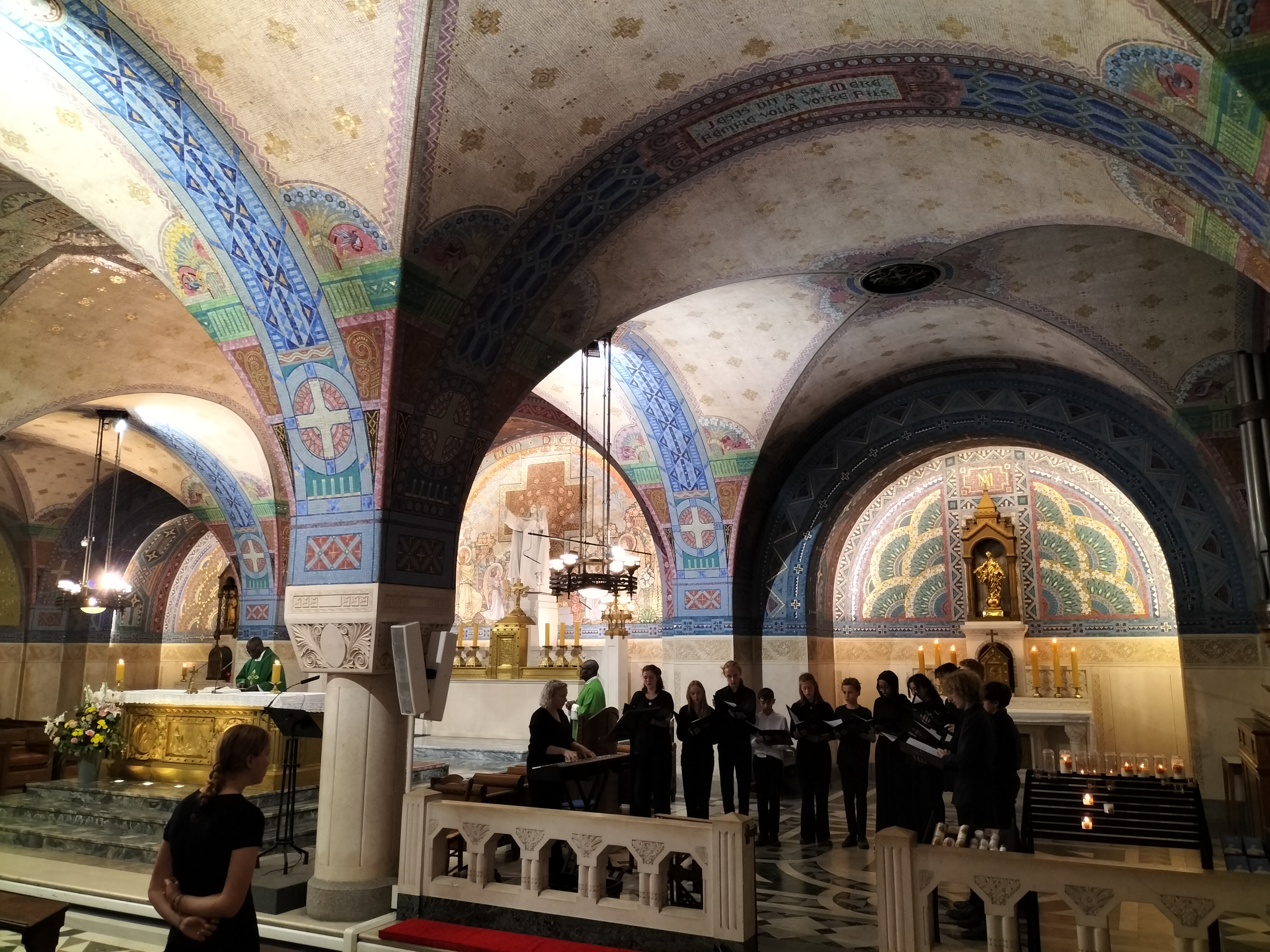 The following morning the choirs met again, this time at the breath-taking Basilica of Saint Therese in Lisieux, to accompany the Sunday Mass with movements of Mozart from the previous evening’s programme. This time, accompanied on organ by Stuart Whotton.